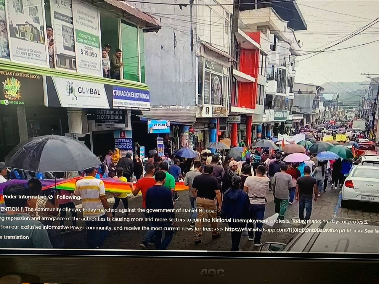 MON 06OCT25 #ParoDay15#Ecuador #ParoNacional2025 #PUYO The community of Puyo, today marched against the government of Daniel Noboa. Strong repression and arrogance of the authorities is causing more and more sectors to join the National Unemployment protests. Today marks 15 days of protests." -